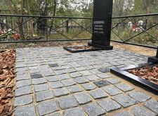 После создания основания мы покрыли территорию места захоронения гранитной брусчаткой,