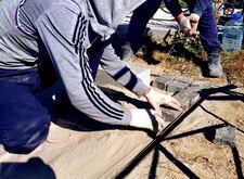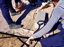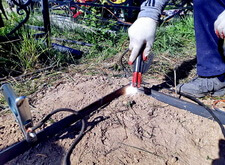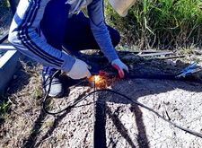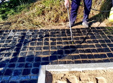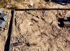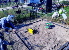 Приступив к работе, мы, первым делом, очистили могилу от травы. Затем положили по периметру места захоронения пятисантиметровую металлическую полосу,