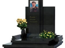 Строгий мемориальный комплекс из черного гранита генерал-майора МВД РФ на Троекуровском кладбище