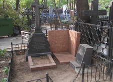 Старая могила, которая достаточно длительный период времени были без присмотра. Резкий контраст хорошего и дорого памятника и сильно отличающиеся по стилю пристройки более современных памятников. Нужно было убраться и перенести надпись с небольшого памятника на общую плиту.