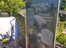Замена двух портретов на памятнике прямо на кладбище